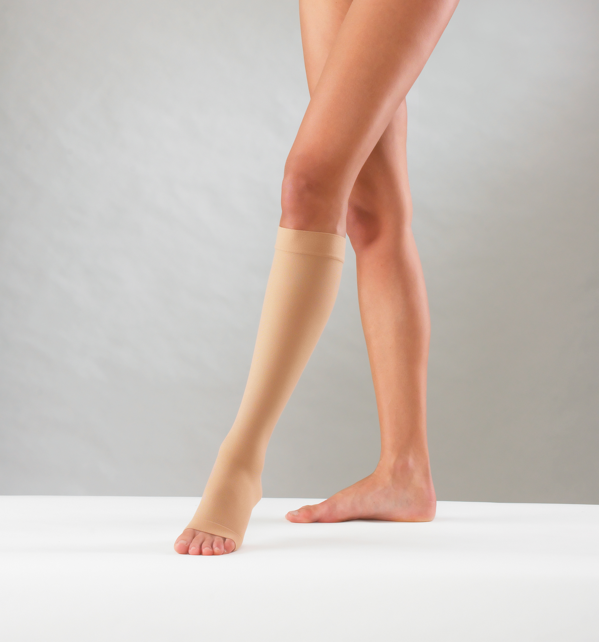 Κάλτσα φλεβίτιδος κλάση ΙΙ κάτω γόνατος ανοιχτά δάχτυλα μπεζ 23-32mmHG (T41)