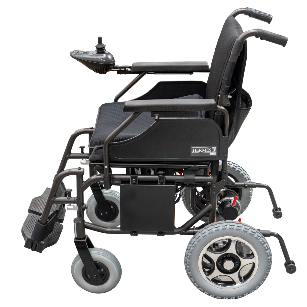 Το Ηermes είναι ένα Ηλεκτροκίνητο Αμαξίδιο, με Αναπαυτικό Κάθισμα, Πτυσσόμενο, με Ρυθμιζόμενα Υποπόδια και Σπαστή Πλάτη για Εύκολη Μεταφορά & Αποθήκευση.